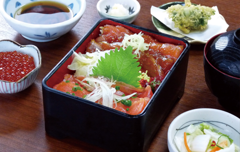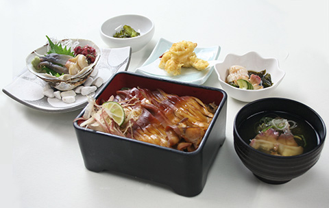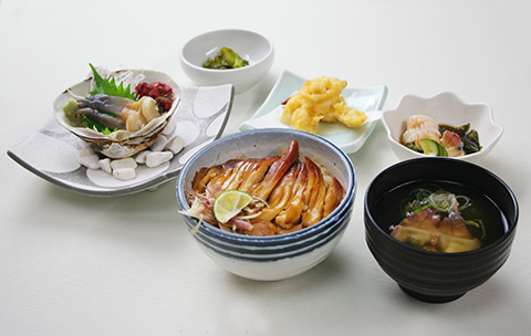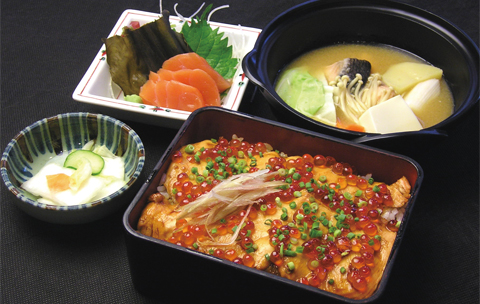 カニやイクラなど北海道の味覚を堪能できる五段懐石「ありが塔」。