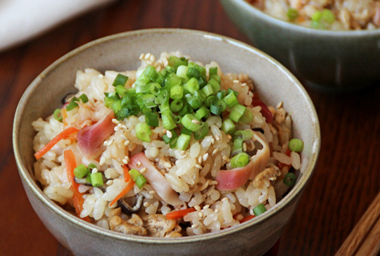北寄貝を煮ただし汁でごはんを炊いて、旨味たっぷりの混ぜ込みごはんに!他の具材を先に煮てから北寄貝を加え、ひと煮立ちだけさせるのが美味しさのポイントです。