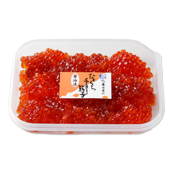 一本物の筋子を作るためには中心部まで塩を浸透させますので、ある程度の辛さに仕上がります。手まり筋子は、ひとくちサイズにしてから漬け込むので塩分の浸透圧が早く、一本物の筋子より塩分も少なくてすみ、均等かつ低塩の筋子になり、甘口で味わい深い筋子になるのです。