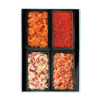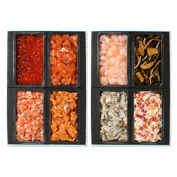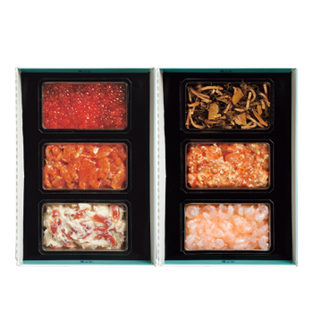 食卓を彩る、天然素材にこだわった「海の宝石箱」。人気の高い生珍味や魚卵、切身などの豊富なアイテムから、ご予算に合わせて自由にお好みの品を詰め合わせ出来ます。