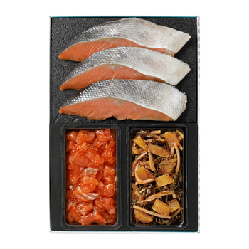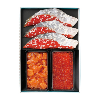 紅鮭さざ浪漬3枚、鮭ルイベ漬130g、いくら醤油漬120g |
