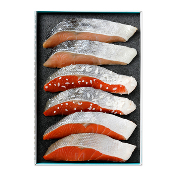 熟成新巻鮭2枚、紅鮭さざ浪漬2枚、紅鮭甘塩口2枚 |