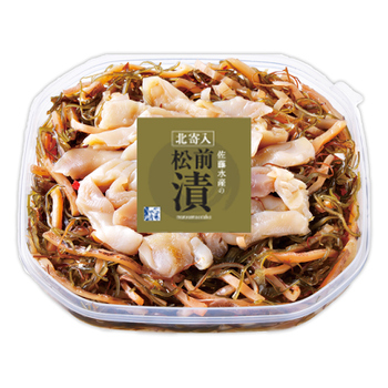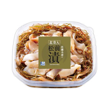 北海道産の昆布とするめを使った松前漬に、食感の良いほっき貝を加え、甘辛に味付けました。ほっき貝はタレに一晩漬け込むことで、味がしっかりとしみ込んでいます。旨味豊かな美味しさは酒肴や食事にもよく合います。