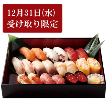 時鮭、たこ、大ばちまぐろ、きんき、ほっき、ほたて、ずわい蟹玉子巻き、ぼたん海老、本まぐろ中とろ、いくら 全10種類(20貫) |