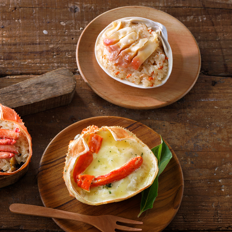 本ずわい蟹を使用し、蟹の甲羅に盛り付けた『本ずわい蟹のドリア』。蟹の旨み、とろけるチーズの旨みが重なる贅沢ドリアです。