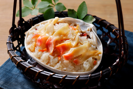 香ばしく炙った北海道産ほたてをまるごと使ったおこわです。海鮮風味のダシが、おこわの味をいっそう引き立てています。