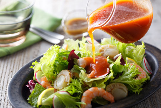 とまとドレッシングは、全て佐藤水産シーフードレストラン「オールドリバー」で1本ずつ手作りしております。ドレッシングの素材となるトマトは、北海道産を使用。寒暖の差が大きい為、身が大きく甘みが強いとまとは、まるで果実の様な甘さです。そのトマトを余すとこなく使った、佐藤水産シーフードレストランオールドリバーの「とまとのドレッシング」は、シーフードはもちろん、パスタや野菜と非常に良く合います。また、リコピンを多く含むトマトは、ビタミンを多く含む鮭の相性が良く、同時に食べることで、それぞれの栄養吸収率の向上に期待が持てます。