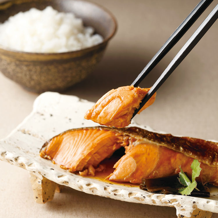 すでに”焼いてある”鮭の切身です。 昆布ダシを効かせた醤油の味付けが食欲をそそります。北海道・石狩に伝わる伝統の鮭の焼き漬に改良を加え、昆布のダシを効かせて深みを出し、美味しく仕上げました。和食のご飯のおともにもぴったりです。調理器具を汚さずに、手軽に召し上がれて、朝ごはんに、お弁当に、晩酌のおともにと大活躍。不意なお客様へのおもてなしなどにも便利です。 低温殺菌で仕上げてありますので、冷蔵庫で1ヶ月日持ちします